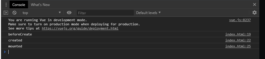 - 개발자도구에서는 mounted 까지만 실행됨. 왜냐하면 뷰 인스턴스가 수정되는 작업이 없었기 때문!