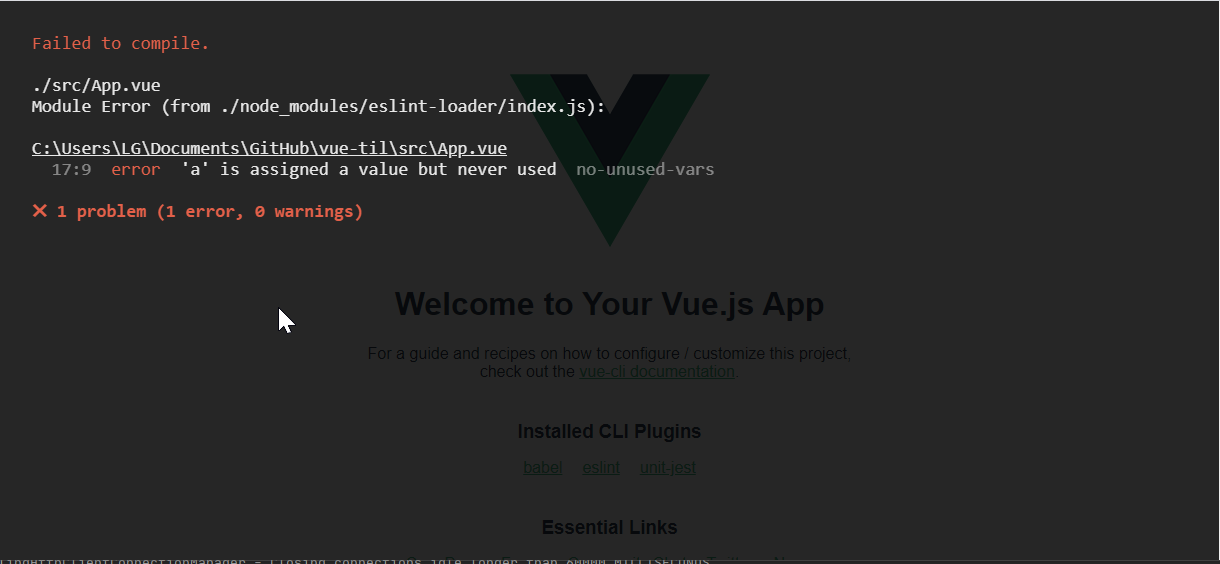 [Vue.js] ESLint 화면 에러 오버레이 처리하기