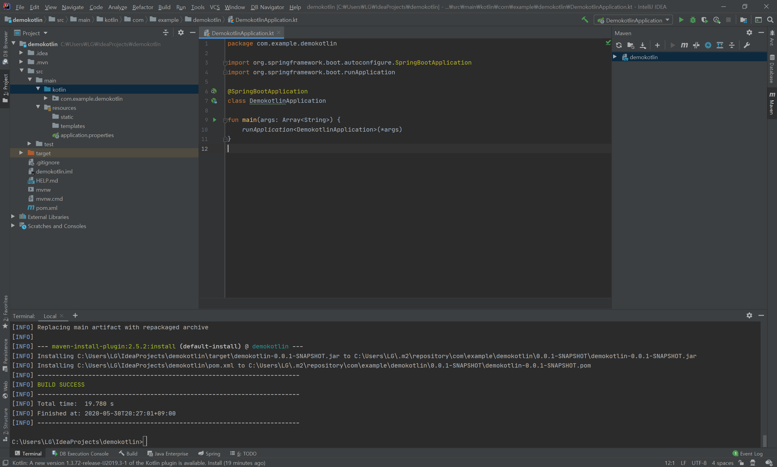스프링 부트 코틀린 프로젝트 main 함수