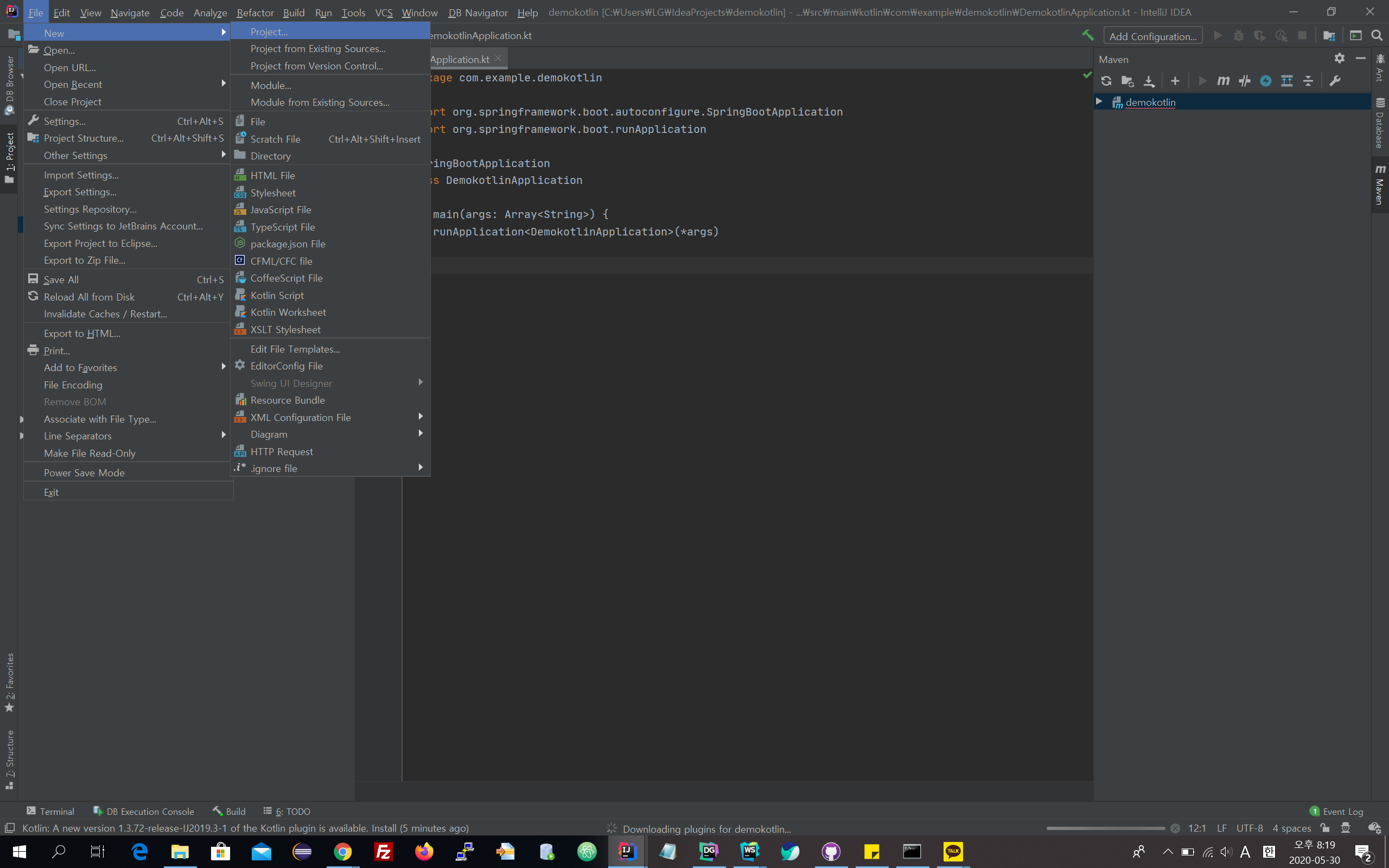 Kotlin을 이용하여 스프링 부트 프로젝트 생성하기