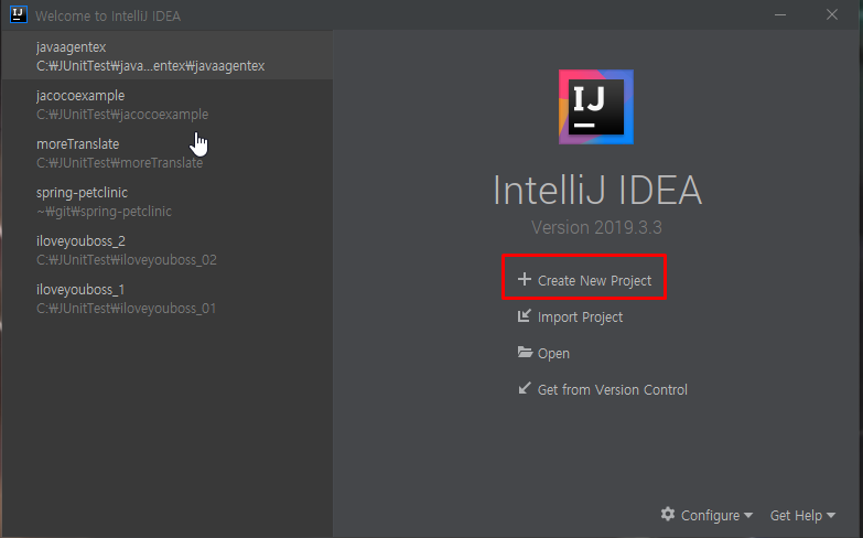 1. Create New Project 클릭