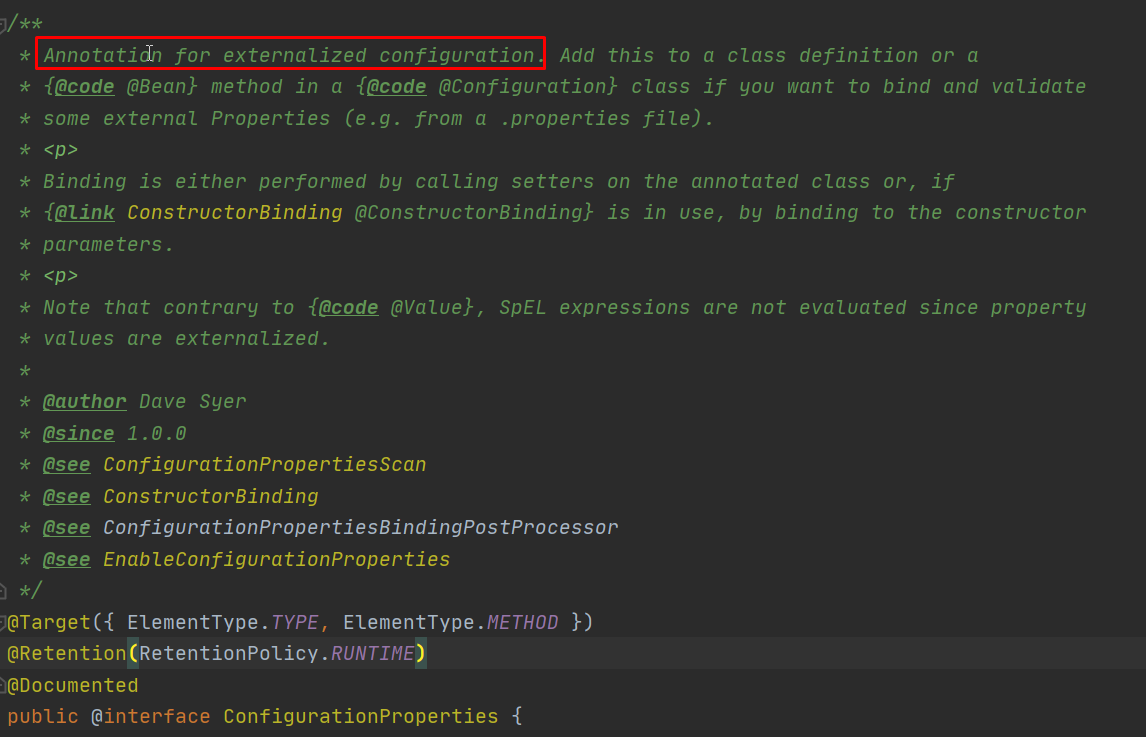 맨 위엣줄의 설명을 보면 설정을 외부화할 때 필요한 어노테이션 정도로 이해할 수 있겠습니다.