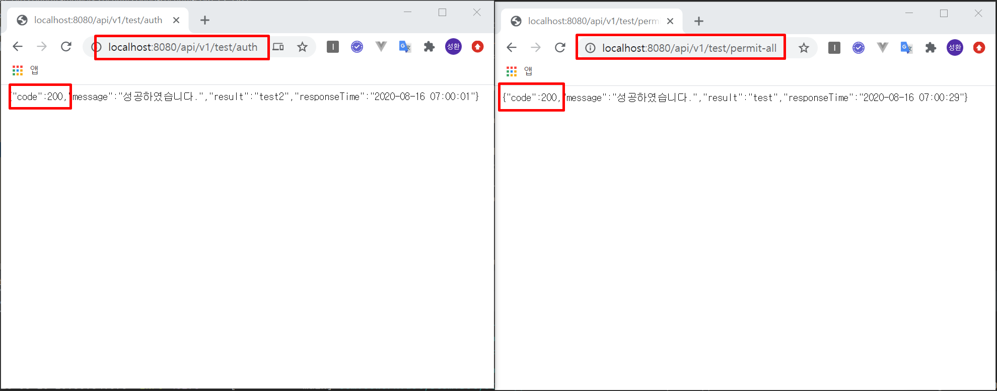 성공적으로 두 url 모두 통과되는 모습을 볼 수 있습니다.!