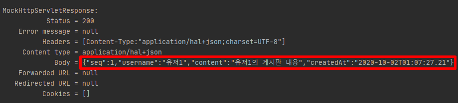- 기본적인 응답은 모두 이러한 모습입니다. RestController에서 리턴되는 모든 객체는 빨간 네모칸안에 밖에 들어갈 수 없습니다.(따로 ResponseEntity에 넣어주지 않는 한..?)