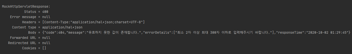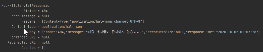 - 예외 처리시에 리턴될 응답 Response 모습입니다.