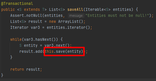 그리고 또 한가지 중요한 부분이 보여지는데요. 이는 saveAll 메소드를 확인하면서 설명드리도록 하겠습니다.