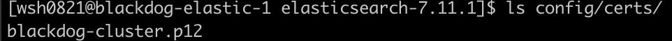 이제 config 디렉토리 하위의 certs 디렉토리 내부 목록을 출력해보면 blackdog-cluster.p12 파일이 있는 것을 확인하실 수 있을겁니다.