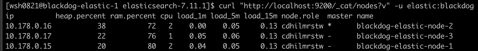 curl "http://localhost:9200/_cat/nodes?v" -u elastic:blackdog